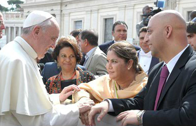 Padma Shri Mr. Surinder Mehta, Chairman, Prime Group of companies together with his wife Mrs. Archna Mehta, son Mr. Rohan Mehta, Managing Director, Prime Meiden Limited and daughter Miss Sneha Mehta being blessed by the Pope at the Vatican City (St. Peter’s Church) on 11th of September, 2013. Also seen in some pictures is Ms. Chitra Narayanan, Indian Ambassador to the Vatican, Switzerland & Liechtenstein. More...