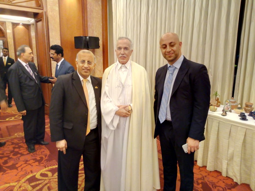 Honorary Consul of Guinea-Bissau H.E. Padma Shri Mr. Surinder Mehta (Chairman, Prime Group of Companies) with Hon’ble Mr. M.J. Akbar, Minister of State for External Affairs, Govt. of India and H.E. Mr. Hamza Yahia-Cheirf, Ambassador of Republic of Algeria to India on the occasion of Algerian National Day Reception held at New Delhi on 1st November, 2017. Also seen in the picture is Mr. Rohan Mehta, Managing Director of Prime Group.