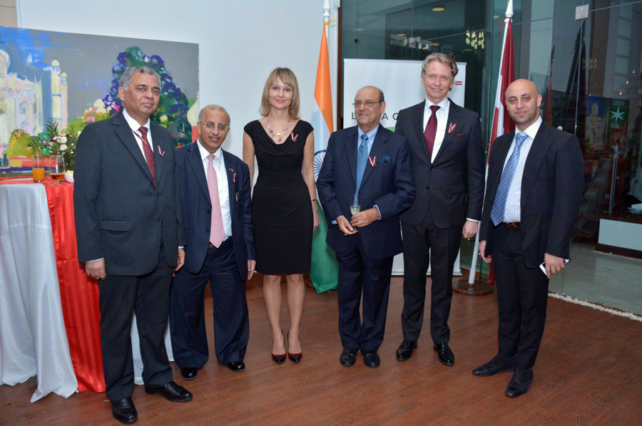 Honorary Consul of Guinea-Bissau H.E. Padma Shri Mr. Surinder Mehta (Chairman, Prime Group of Companies) with H.E. Mr. Artis Bertulis, Ambassador of The Republic of Latvia to India on the occasion of Latvia’s 100 years celebration held at New Delhi on 15th November, 2018. Also seen in the picture is Mr. A. Gitesh Sharma, Secretary (West), Ministry of External Affairs, Govt. of India; Mrs. Artis Bertulis; Mr. Navin Chawla, Former Chief Election Commissioner of India and Mr. Rohan Mehta, Managing Director, Prime Group.