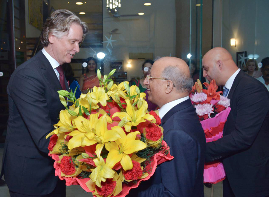 Honorary Consul of Guinea-Bissau H.E. Padma Shri Mr. Surinder Mehta (Chairman, Prime Group of Companies) Congratulating to H.E. Mr. Artis Bertulis, Ambassador of The Republic of Latvia to India on the occasion of Latvia’s 100 years celebration held at New Delhi on 15th November, 2018. Also seen in the picture Mr. Rohan Mehta, Managing Director, Prime Group.