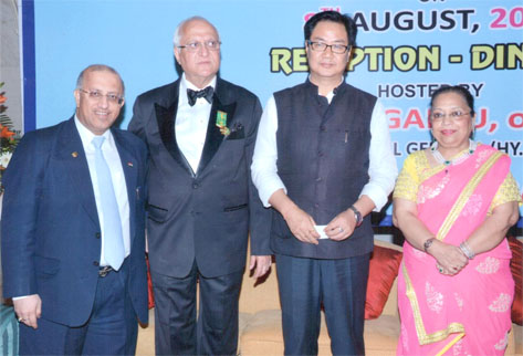 Mr. Kiren Rijiju, Hon’ble Union Minister of State for Home Affairs, Govt. of India at the National Day celebrations of the Union of the Comoros on 8th August, 2014 at New Delhi. Also seen in the picture Prime Group Chairman, Padma Shri Mr. Surinder Mehta; Mr. K.L. Ganju, Consul General (Hony.), Union of the Comoros and Mrs. Ganju.