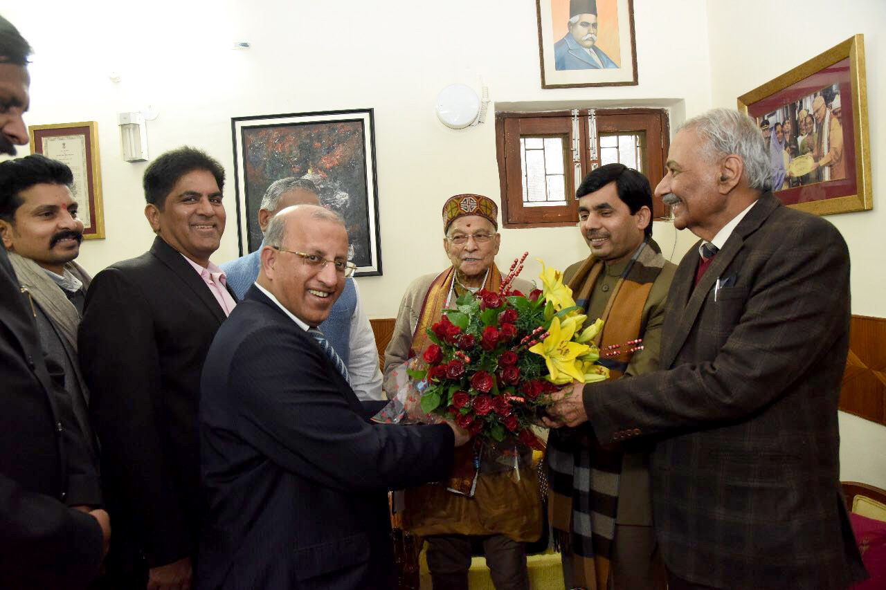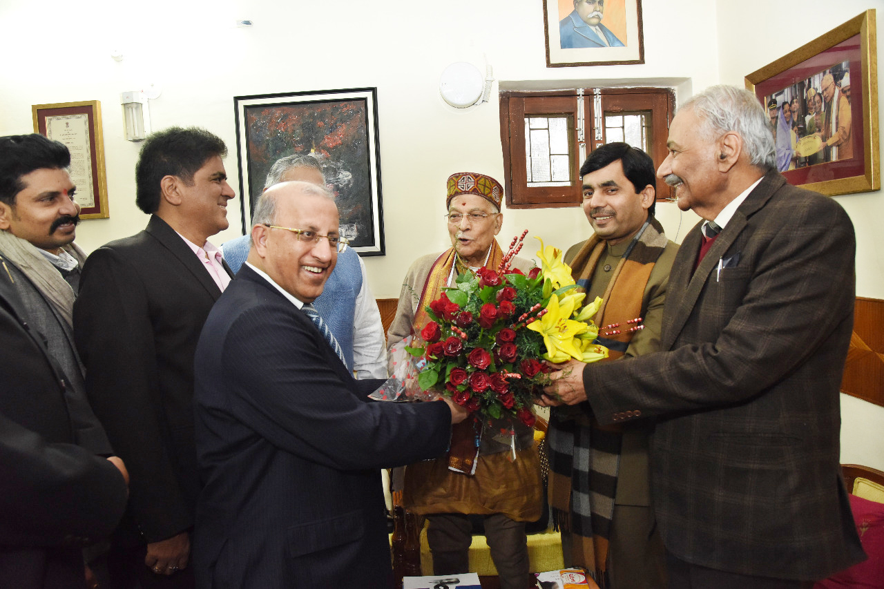 Honorary Consul of Guinea-Bissau in India H.E. Padma Shri Mr. Surinder Mehta (Chairman, Prime Group of Companies) congratulating Mr. Murli Manohar Joshi on his Birthday on 5th January, 2018 at his residence. Also seen in the picture are Gen. V.K. Singh, Hon’ble Union Minister of State for External Affairs, Mr. Syed Shahnawaz Hussain, former Union Cabinet Minister for Textiles and Mr. M.J. Rehman Group President (Corporate Affairs), Prime Group.