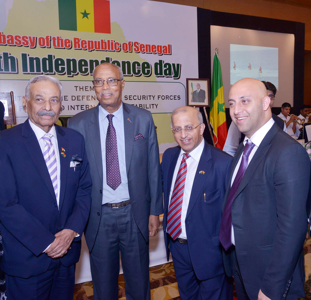 L-R – Mr. M.J. Rehman, Group President Prime Group, H.E. Mr. Alen Tsehaye Woldemariam, Ambassador & Dean of African Heads of Mission, H.E. Padma Shri Mr. Surinder Mehta, Honorary Consul, Republic of Guinea-Bissau, Chairman Prime Group of Companies, Gurgaon, Mr. Rohan Mehta, MD Prime Group, on 11th May 2018 at Senegal National Day, Hotel Le Meridian, New Delhi.