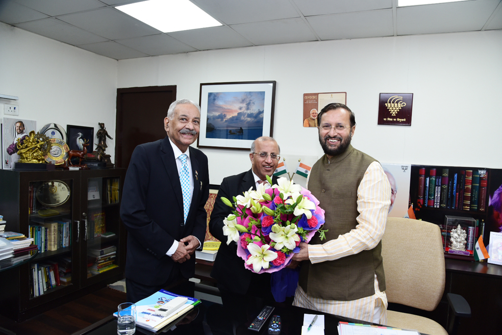 “Greeting Mr. Prakash Javedekar at his residence on his recent appointment
