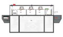 The 549.30 B is equipped with our mirror zone architecture.Based on our well-proven sliding zone heating chamber, there ore two reflected arranged outer chambers.These reflected chambers form the "Forced Convection" upper heat. For problem solutions with big heat requirements, there are additionally four heating plates as bottom heat available. The temperatures of the two heating chambers and the four heating plates can be chosen individual. The conveyor is realized as chain-led PTFE bags. With our mirror zone heating chamber you can adjust both soldering and adhesive hardening profiles. |