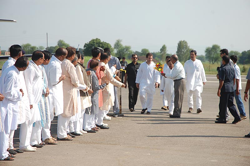 Shri Rahul Gandhi being welcomed at Rewa Airport (Madhya Pradesh) by Airport Manager (Skymaster Aviation)